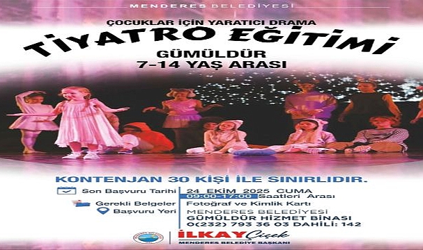 Çocuklar için yaratıcı drama tiyatro eğitimleri veren Menderes Belediyesi, yeni sezon