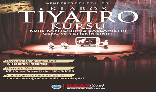 Tiyatro eğitimlerine katılmak isteyen vatandaşlar 1’er adet kimlik fotokopisi ve fotoğraf ile menderes Belediyesi Kültür ve Sosyal İşler Müdürlüğü'nde kayıt işlemini yaptırabilecek. Menderes Belediyesi Klaros Tiyatro Topluluğu tarafından verilecek olan eğitimlerde katılımcılar doğaçlama, diksiyon ve sahne teknikleri gibi konularda dersler alacak.